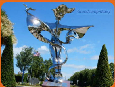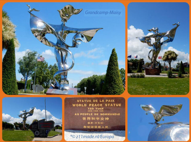 Dan heb je gehoord dat er veel militaire wagens op weg zijn naar Ver sur Mer en dan kom je dit mooie glimmende monument tegen in Grandcamp-Maisy.. Gemaakt ter gelegenheid van 60 jaar Wereld Vrede. Toch maar even uitstappen en even van dichterbij bekijken.