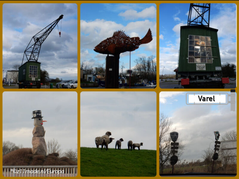 Daarna naar de haven van Varel gegaan met diverse vis restaurantjes. Bijzonder ook de sneeuwpop op de rotonde vlak bij de sluis.