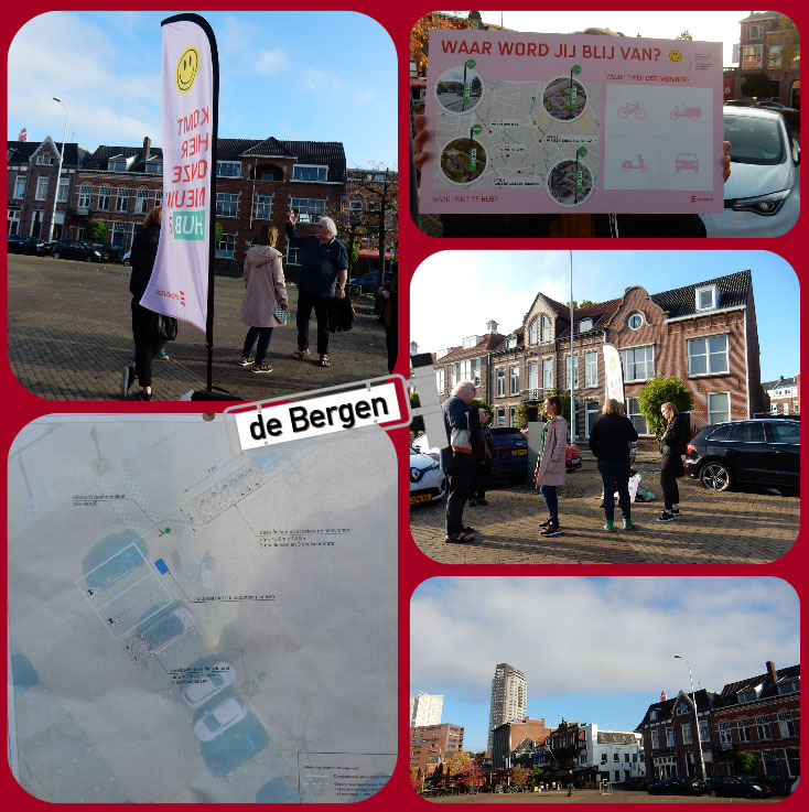 20 oktober 2022, uitleg op het Wilhelminaplein m.b.t. het plaatsen van een HUB. Deze plek is als voorkeur aangegeven door afdeling verkeer en de werkgroep Verkeer van de Bewoners Vereniging de Bergen. De weergoden waren ons gelukkig goed gezint. De regenbuien waren in ieder geval weg gewaaid(lol). Wel net zo fijn bij een buiten activiteit.